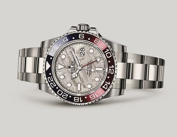 Первый из обладателей безеля, метко прозванного в народе Pepsi за характерную расцветку, появился на свет в незапамятном 1955-м. Почти сразу же премьера, оснащенная модулем второго часового пояса, стала официальными часами пилотов Pan American World Airways. Сегодня подчеркнуть авиационное происхождение семейства Rolex GMT-Master II выпало детали вовсе внеземного происхождения – метеориту: из него изготовлен циферблат.