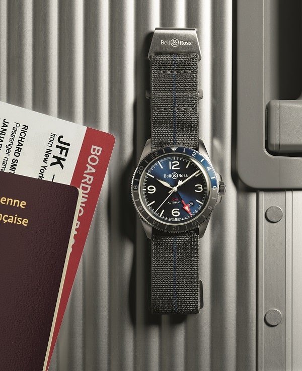 Страстный поклонник часов для пилотов – швейцарская марка Bell&Ross – подготовила к запуску на рынок модель BR V2-93 GMT Blue с функцией GMT (последняя отображается на синем циферблате с гальваническим покрытием дополнительной центральной стрелкой). Стальной 41-миллиметровый корпус (круглый, что не совсем характерно для этого производителя) дополнен с лицевой стороны двунаправленно вращающимся безелес кольцевой накладкой из анодированного алюминия в сине-серых тонах.