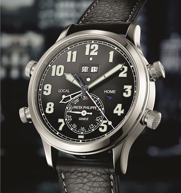 Строго говоря, не относясь к классу рассматриваемых в обзоре часов напрямую, эта модель все же заслуживает упоминания именно в рамках нашей подборки. Ведь адресованная путешественникам референция Patek Philippe Alarm Travel Time Ref. 5520P-001 совершенно очевидно позаимствовала облик у стопроцентно летной предтечи – Calatrava Pilot Travel Time 5524G, выпущенной в 2015 году. Фактически аналогичный диаметр (42,2 мм), те же элементы оформления и функции, но теперь – с 24-часовым будильником вкупе.
