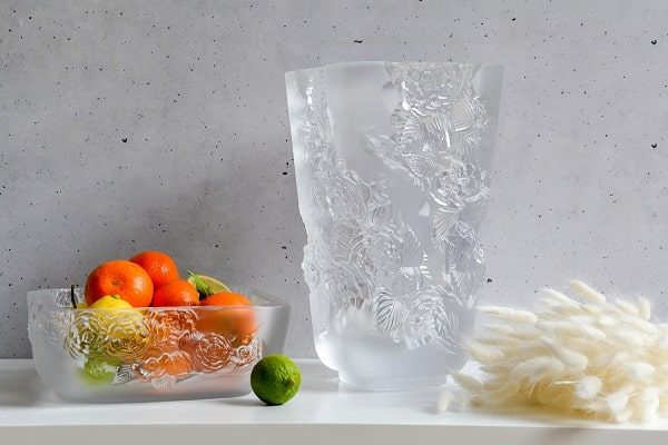 Те же традиции продолжает сегодня бренд Lalique, создавая элегантные предметы интерьера, в которых запечатлена красота растительного и животного мира. Взгляните на вазы и чаши «Пионы» из новой коллекции Botanica. Чтобы подчеркнуть контраст между нежностью цветка и прочностью минералов, мастера применили технику утраченного воска и использовали сочетание квадратной формы с плавными линиями. Цветочные гирлянды обвивают хрусталь, вызывая ассоциации с растениями, которые покрывают собой откосы скал или старинные здания. Кроме «Пионов» Botanica включает в себя вазу и подсвечник «Ландыш», графин «Орхидея», вазы «Цветки вишни», скульптуры «Волк» и «Обнаженная Флора».