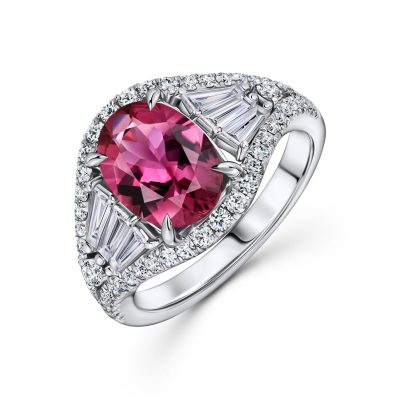 Это размышления на тему одного из самых известных украшений – обручального кольца принцессы Дианы с великолепным бархатным сапфиром. В 1981 году будущие супруги принц Чарльз (сегодня – король Карл III) и Диана Спенсер не стали рыться в фамильных драгоценностях в поисках камня, а заказали готовое кольцо у Garrard. Ювелиры MIUZ Diamonds создали свою интерпретацию украшения. Оттенок сапфира из синего стал черным, а бриллиантовое обрамление – более легким. Тот же мотив повторен и в серьгах. Другой сет Empire сверкает рубинами насыщенного винного оттенка: рубиновый октагон 2,42 карата в кольце и пара октагонов весом 5,32 карата в серьгах обрамлены бриллиантами.