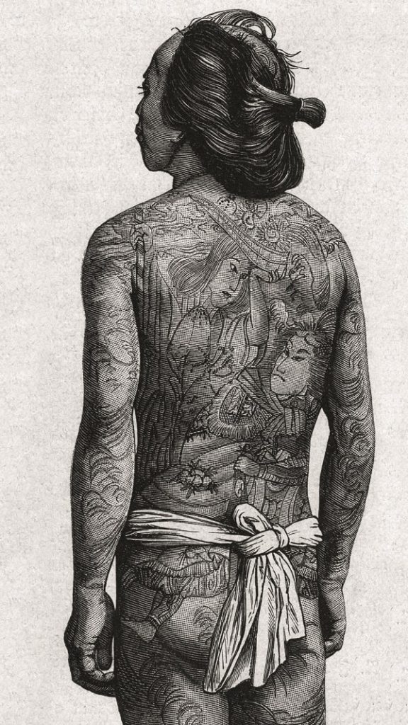 В XVIII веке в Японии было принято клеймить преступников (чаще всего клеймо наносилось на лицо или руки). Процедура облегчала процесс опознания нарушителя закона. Однако существенно снижала шансы «заклейменного» повторно влиться в общество. Не желая мириться с таким положением дел, обитатели японского социального дна сделали татуировки своей особой меткой. С одной стороны, тату давали преступникам возможность спрятать унизительные клейма, оставленные тюремщиками. А с другой – представляли криминальный статус их носителей в привлекательном и даже героическом виде.