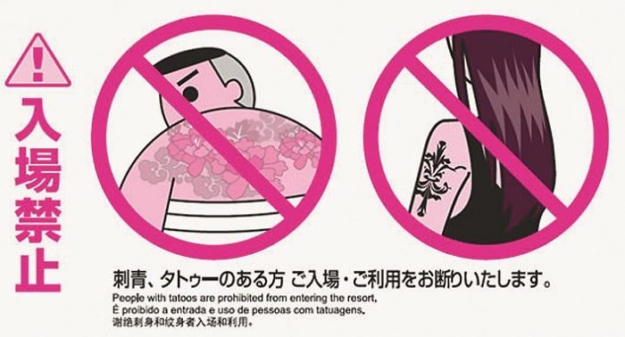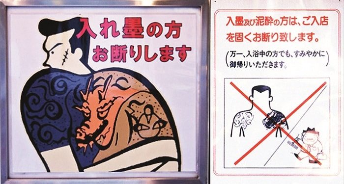 «Есть ли у вас татуировки? Если да, нужно непременно заклеить их чем-нибудь, а то вас не пустят в онсэн», – такими словами опытные гиды приветствуют новоприбывших в Японию. Общественные бани, онсэны (горячие источники), гольф- и спортклубы не принимают клиентов с татуировками – желающим воспользоваться их услугами следует заранее озаботиться маскировкой. Незнакомые с японскими обычаями могут списать подобные правила на любовь японцев к чистой, ничем не испачканной коже, однако дело обстоит сложнее. Хотя само слово «татуировка» не японское, страх перед «хоримоно» (так называют татуировки в Японии) и их носителями силен.