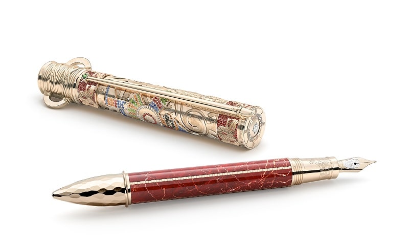 Память о золотом веке империи хранят руины храмового комплекса Темпло Майор в Теночтитлане (нынешнем Мехико). Именно здесь взошел на престол Монтесума I: во время церемонии ему преподнесли бирюзовый царский плащ шиутильматли с красным подбоем и золотую диадему. Этот образ нашел отражение в дизайне ручки Montblanc Patron of Art Limited Edition 8. Ее корпус выполнен из темно-красной яшмы и украшен элементами из золота 750-й пробы цвета шампанского. Удлиненный золотой колпачок декорирован бриллиантами, гранатами, зелеными цаворитами и разноцветными сапфирами. А его поверхность покрыта выгравированными вручную изображениями священных животных и крылатого бога – покровителя ацтеков Уицилопочтли.