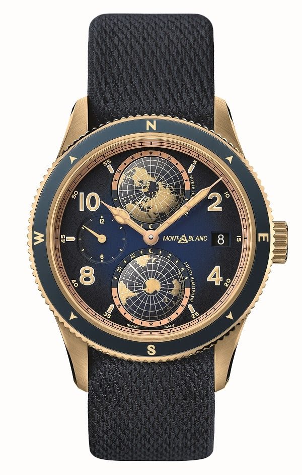В 2018-м дом Montblanc представил мануфактурную модель 1858 Geosphere, в которой использовался способ индикации мирового времени в виде двух вращающихся дисков, представляющих собой объемные миниатюрные копии Северного и Южного полушарий. Спустя два года свет увидел лимитированный 262 экземплярами именной (линейка посвящена итальянскому альпинисту и исследователю Райнхольду Месснеру) тираж – с апертурой даты, вращающимися сферами и GMT-индикатором на «9 часах».