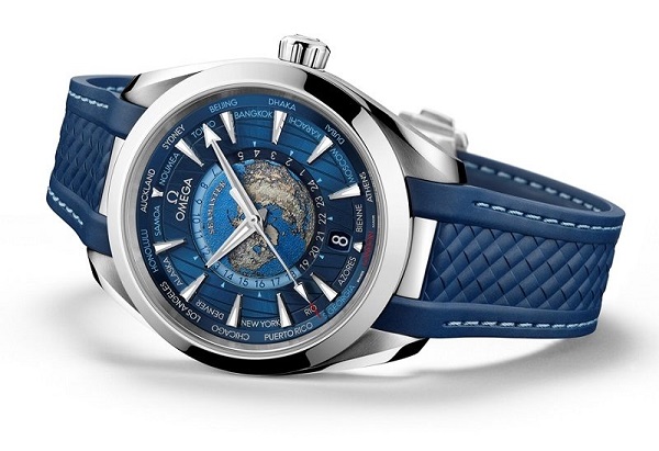 Индикация двух и более часовых поясов стала визитной карточкой модели Omega Seamaster Aqua Terra Worldtimer, которая к 2019 году из лимитированного выпуска преобразовалась в регулярную серию, уже в 43-миллиметровых корпусах, изготовленных не из платины, а фирменного розового золота Sedna либо стали. Центральную область многоуровневого циферблата заняла титановая пластина, на которой методом лазерной абляции было воссоздано изображение земного шара, каким мы видим его со стороны Северного полюса. Модели предлагается носить на металлическом браслете либо каучуковом ремешке ярко-синего цвета.