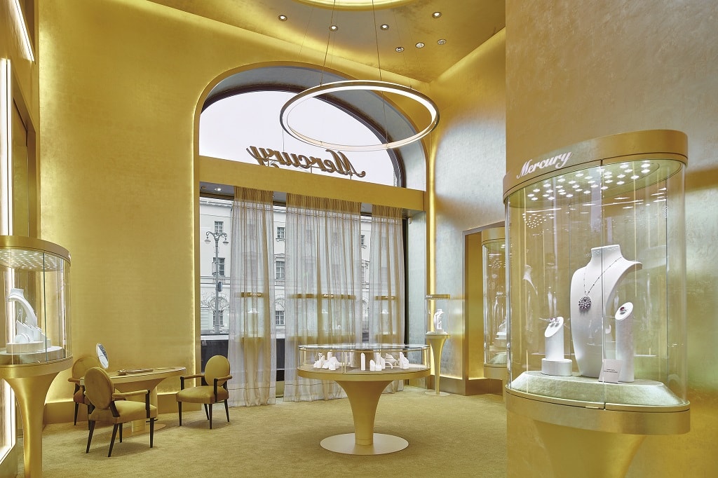 Стены этого отеля помнят шуршание платьев Марлен Дитрих и королевы Испании Софии, обаятельную улыбку Арнольда Шварценеггера и стремительную походку Майкла Джексона. Теперь им предстоит привыкнуть к сиянию витрин, где представлена полная коллекция украшений Mercury, – первый монобрендовый ювелирный бутик Mercury открылся в историческом здании этой зимой. Высокие потолки и широкие арочные окна добавили легкости пространству, решенному в золотых тонах, а полы из итальянского кремового мрамора и бархатная мебель наполнили его ощущением тепла и уюта. Среди наиболее ярких экспонатов выставки – кольца. Например, из коллекции «Color» с ярким изумрудом в обрамлении бриллиантов. Насыщенный зеленый цвет драгоценного камня, добытого в легендарных копях Мусо в Колумбии, будто напоминает: весна совсем близко.