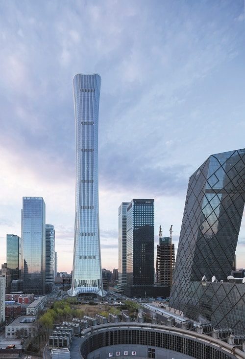 В 2018 году завершилось пятилетнее строительство самого высокого здания столицы страны – небоскреба CITIC tower, или China Zun («Чайна-Цзунь»), спроектированного нью-йоркской архитектурной компанией KPF. Американцы не обошлись без отсылок к традиционной культуре. Свое название 528-метровая башня получила в честь древнекитайского ритуального сосуда цзунь. Отсюда же – ее необычная форма, напоминающая женскую фигуру: ширина стилобатной части здания составляет 78 м, к середине конструкция сужается до 54 м, а затем вновь расширяется до 69 м. На 108 этажах CITIC tower расположены штаб-квартиры группы CITIC (девелопер здания) и одноименного банка, а также многофункциональный бизнес-центр, магазины и рестораны.