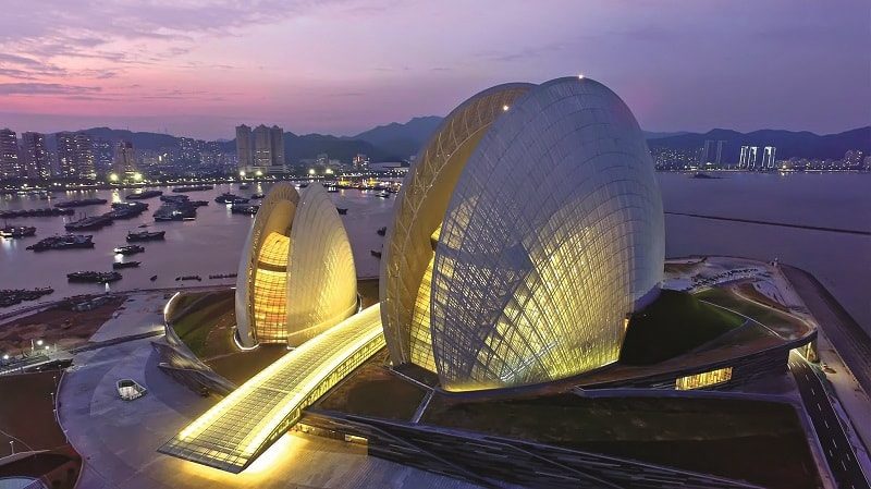 Летом 2018 года в китайской провинции Гуандун было завершено возведение крупнейшей в регионе театральной площадки – Дома оперы. Проект здания в форме раковины, стоящей на берегу реки Чжуцзян (что в переводе означает «жемчужная река»), разработали китайские архитекторы из Пекинского института архитектурного дизайна (BIAD). Морская тема отражена не только в экстерьере, но и во внутреннем оформлении театра: так, рельефные стены имитируют изгибы морских волн, а специальная адаптивная подсветка усиливает этот эффект. Комплекс площадью 59 тыс. кв. м разделен на несколько функциональных зон: оперный театр на 1,5 тыс. зрительских мест, многофункциональный зал на 550 мест, а также театр под открытым небом, где могут разместиться до 350 зрителей.