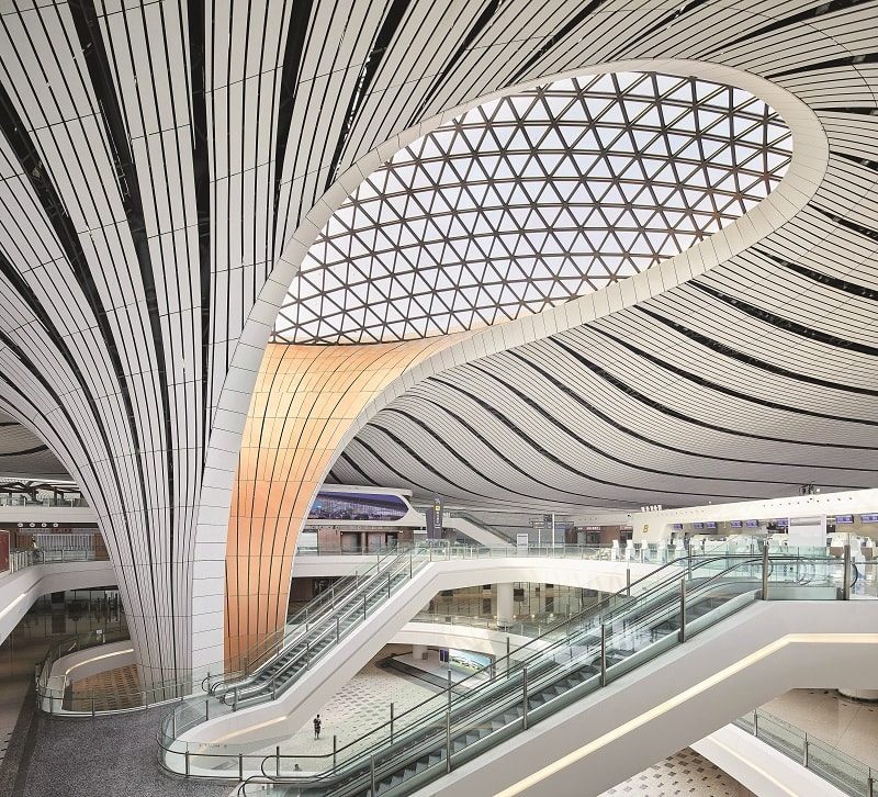 Zaha Hadid Architects работает в Китае дольше и активнее большинства своих западных коллег и, похоже, не собирается снижать обороты. Помимо множества локальных объектов, в этом году открылся построенный по проекту британцев крупнейший в мире аэропорт – Пекин Дасин, который сможет обслуживать до 45 млн пассажиров в год. Новый терминал площадью 700 тыс. кв. м оборудован 79 выходами на посадку. При этом для того, чтобы дойти из одного конца здания в другой, потребуется меньше десяти минут. Структура и внешний облик комплекса отсылают к архитектуре традиционного китайского дома: вокруг центральной части терминала («двора») расположены шесть отсеков (жилых комнат), соединенных прозрачными переходами. Для их освещения используется солнечный свет, который благодаря характерным для Zaha Hadid Architects текучим формам здания равномерно рассеивается по всему пространству.