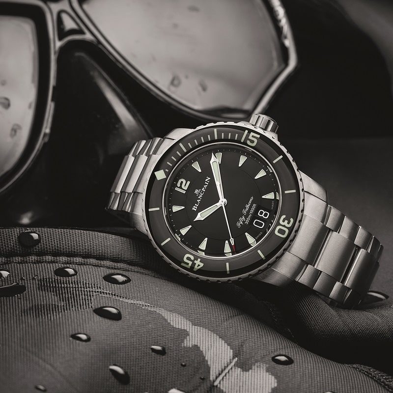 Когда в 1950-х ВВС США, а также министерства обороны других стран искали для своих нужд часы, Blancpain создал дюжину прототипов, впоследствии поставленных на вооружение. Сейчас модели Air Command, к слову, наиболее часто разыскиваемые военные хронографы конца 1950-х, получили новую жизнь. Стальной корпус 42,5 мм в диаметре оснащен механизмом F388B. Временная шкала на безеле, как и часовые метки и стрелки, изготовлена с использованием имитирующей «старый радий» Super-LumiNova и воспроизводит оранжевый оттенок меток оригинального хронографа. Модель снабжена 30-минутным накопителем на отметке «3 часа» и 12-часовым счетчиком на отметке «9 часов», в то время как тахиметрическая шкала вокруг основного кольца показывает скорость на основе тысячеметровой дистанции. Ротор из красного золота, выполненный в форме пропеллера, виден через прозрачную заднюю крышку.