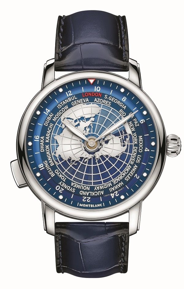 У Montblanc нет богатой истории производства часов для пилотов, однако модель Star Legacy Orbis Terrarum оснащена одним из самых полезных часовых усложнений для путешественников, преодолевающих пространство и часовые пояса, – функция индикации мирового времени собственной разработки. Идея состояла в том, чтобы часы были просты в использовании, а их показания интуитивно понятны. Благодаря этой функции можно одновременно видеть время всех 24 поясов с разделением на дневные и ночные часы. Новые модели представлены в корпусах диаметром 43 мм из нержавеющей стали, а версии из лимитированной серии – в корпусах из розового золота 18 карат.