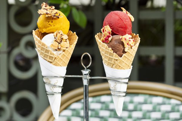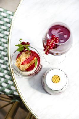 По случаю открытия сомелье Флориан Гийото создал три освежающих коктейля в стиле Беллини – с шампанским и без – c неповторимыми сочетаниями летних вкусов: желтая слива Мирабель с вербеной, черная смородина с мятой и клюквой, лимон с маракуйей и ванилью. К коктейлям предлагаются изысканные закуски тапас: блины с копченым лососем и икрой юдзу, огуречный дзадзики с маринованным ревенем и бриошь с пастрами. Сладкоежкам понравятся фруктовые десерты: томленый персик с красной смородиной, вербеной и хрустящими вафлями, клубника с малиной и кремом шантильи. Также обязательно стоит попробовать мороженое ручной работы с оригинальными вкусами – например, клубнику с гибискусом или манго сорта Альфонсо. В качестве топпинга можно выбрать миндаль с шоколадной или клубничной стружкой, карамелизированный фундук или безе.