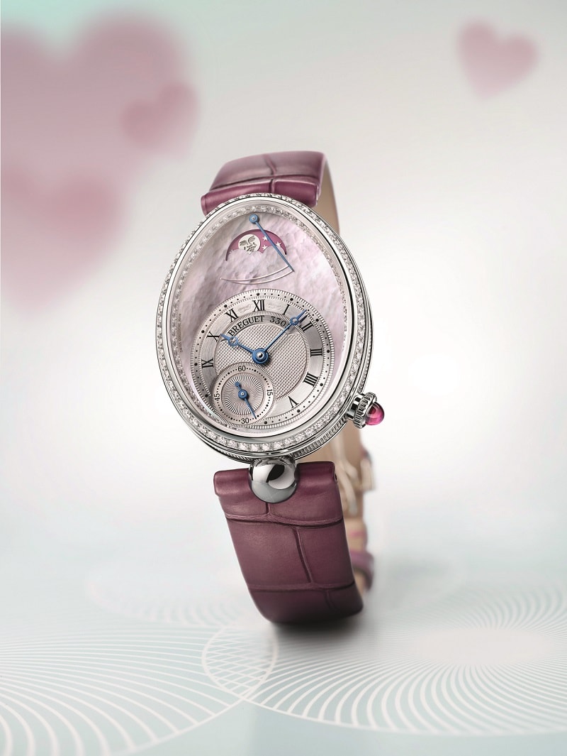 Ее Величество, конечно же, была в восторге: модель, положившая начало легендарной женской линии «Reine de Naples», отличалась элегантной овальной формой, имела репетир, индикатор фаз Луны, термометр и браслет, сплетенный из тончайших золотых нитей. Ничего совершеннее быть не может – так казалось и владелице, и всем ее придворным. Удивительно, но может – понимаем мы, разглядывая часы из новой лимитированной серии «Reine de Naples 8905», посвященной Дню святого Валентина. Украшенный бледно-розовым перламутром циферблат играет радужными переливами, заводная головка завораживает сиянием розового сапфира огранки кабошон, а ремешок цвета мальвы из кожи аллигатора касается запястья с нежностью влюбленного романтика. Выполненный из белого золота корпус Reine de Naples 8905 заключает в себе подлинное сокровище – механизм с калибром 537DRL2 с автоматическим заводом и 45-часовым запасом хода.