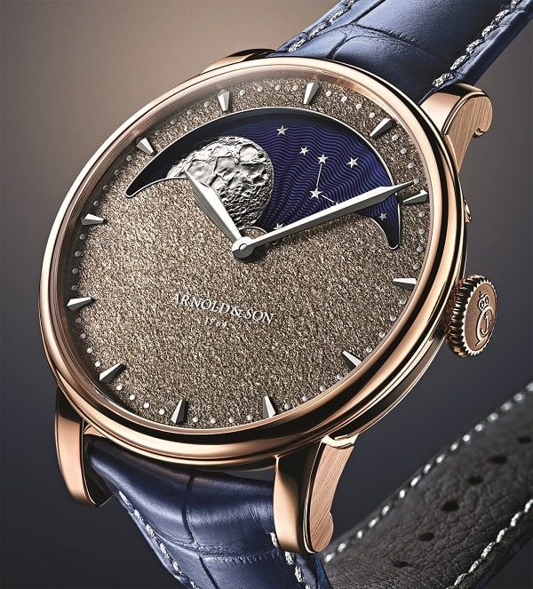 Обсидиан (магматическая горная порода, образующаяся в результате быстрого охлаждения лавы) стал самой заметной деталью декора 28 экземпляров семейства Perpetual Moon Obsidian от марки Arnold & Son, базирующейся в Ла-Шо-де-Фоне. Для этой ограниченной серии создатели выбрали редкую блестящую разновидность камня родом из Мексики. Благодаря ему укрупненный, тщательно детализированный указатель лунных фаз смотрится еще эффектнее.