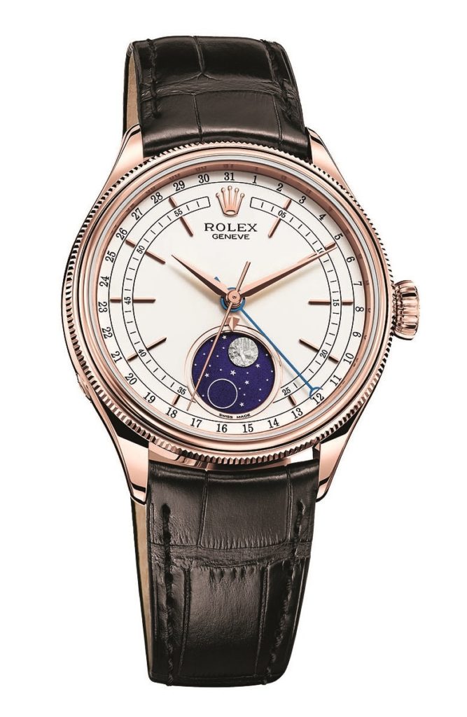 Классическая красота модели подчеркивается фирменным розовым золотом Everose, формула сплава которого с 2005 года держится производителем в строжайшем секрете. На белом лакированном циферблате выделяется насыщенно-синий индикатор лунных фаз с полной и новой Луной. Основой первой послужила пластина из метеорита, а вторая изображена в виде круга. Кроме этого, часы располагают функцией календаря: дата отображается центральной стрелкой с наконечником в виде полумесяца.