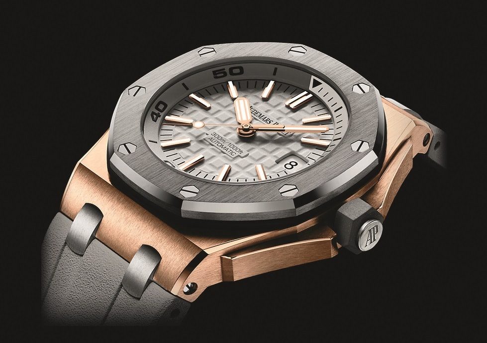 Уже восемь лет коллекция «Offshore Diver» сохраняет за собой титул бесспорного флагмана в сегменте роскошных дайверских моделей. В 2018 году линейку пополнил очередной бестселлер в 42-миллиметровом корпусе из розового золота и титана. Не самое распространенное, но невероятно эффектное сочетание фактур, которое составляет единый ансамбль с циферблатом серого цвета, украшенным фирменным паттерном Mega Tapisserie.