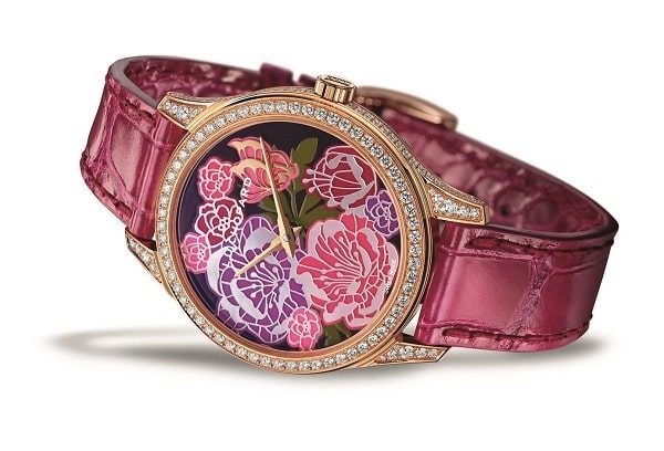 Мануфактура Chopard, ежегодно прославляющая нежную красоту пионов, не пропустила и текущий, 2019-й. Свет увидело восемь новых представителей L.U.C XP Esprit de Fleurier Peony, на циферблатах которых благодаря сочетанию техник гравировки, перламутрового декупажа и декалькирования расцвел мини-сад, глубиной и насыщенностью палитры не уступающий цветущим бутонам, созданным самой природой. Особенным образом отделаны даже автоматические 35-миллиметровые мануфактурные калибры L.U.C 96.23-L, мосты которых украсил узор в стиле fleurisanne.