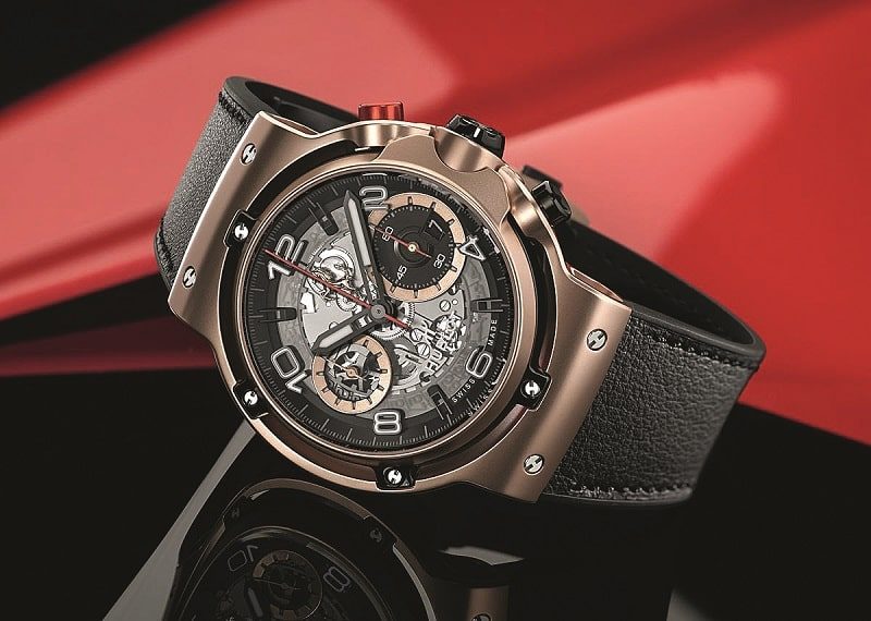Для Hublot Classic Fusion скелетонизированный циферблат со временем превратился в одну из самых узнаваемых и характерных черт экстерьера. Год назад швейцарцы в очередной раз «прокачали» творческий альянс с автоконцерном Ferrari серией Classic Fusion Ferrari GT в 45-миллиметровых корпусах из титана (1000), фирменного сплава King Gold (500) и 3D-карбона (500 экземпляров). Последний представляет из себя композит с полимерной матрицей, в котором волокна материала переплетены в трех разных направлениях. Именно этот материал сегодня высоко ценится элитными представителями автопрома за свои легкость и прочность. «Гоночная серия» оснащена мануфактурными «движками» HUB1280 с колонным колесом хронографа и трехдневным запасом хода. Видны ли механизмы с лицевой стороны часов? Разумеется, да.