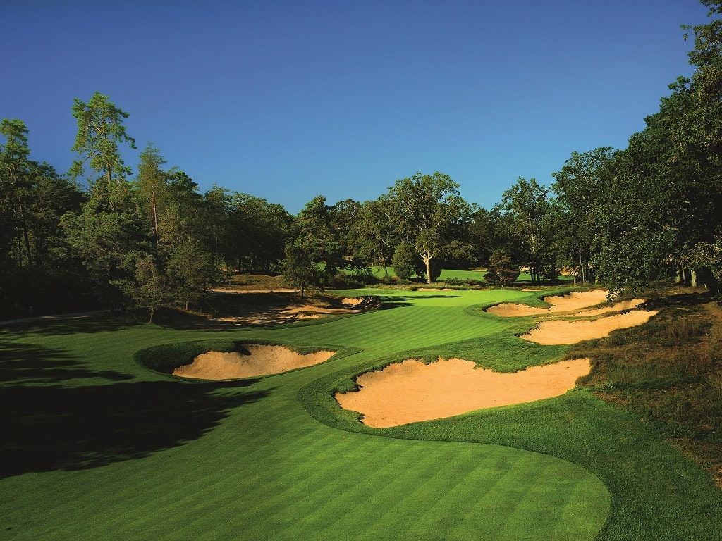 А теперь перенесемся из Северной Ирландии в Северную Америку, на юго-запад Нью-Джерси. Здесь в густых сосновых лесах вот уже сто лет существует и поражает мир гольф-поле Pine Valley Golf Club. Пейн-Вэлли было полем номер 1 в США в 1985–2000, 2003–2008, 2013 2014, 2016–2018 годы. Судя по всему, оно никогда не опустится ниже третьего места в мировых и американских рейтингах. И вот почему. Каждая лунка на этой арене уникальна. Они – вселенная, апофеоз дизайнерского мастерства, красоты, сложности, качества травы, бункеров и прочих элементов. Представьте, что на 200 гектарах леса, дюн, ручьев вы находите не одно великолепное гольф-поле, а целых 18! Ничто не мешает вам насладиться каждым из них – все трассы автономны и нигде не пересекаются. Любая лунка сочетает в себе все три вида гольф-дизайна – штрафной (наказывающий за любую неточность), стратегический (он предполагает несколько вариантов прохождения лунки) и героический (когда можно сделать один рискованный виртуозный удар, который принесет вам победу).