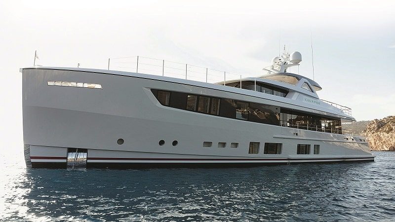 Заметим, что при довольно компактных габаритах (36 м в длину, 8 м в ширину) яхта от Mulder Shipyard внутри кажется больше, чем выглядит снаружи: высокие потолки, большие окна и светлые тона в декоре делают свое дело.