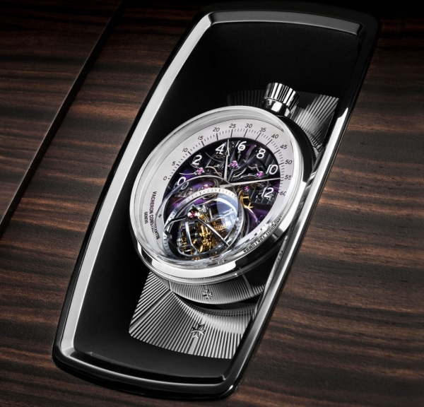 Хотите в приборной панели своего авто часы с турбийоном? Легко! Этим летом один из почитателей роскоши заказал для своего Rolls-Royce Amethyst Droptail уникальную модель от Vacheron Constantin в съемном держателе. Les Cabinotiers Armillary Tourbillon с армиллярным турбийоном отображают время ретроградными часовой и минутной стрелками. Часы оснащены мануфактурным усложненным калибром 1990 с 58-часовым запасом хода. Чтобы встроить их в машину, размер корпуса уменьшили с 45 до 43,8 мм, а заводную головку передвинули на «12 часов».