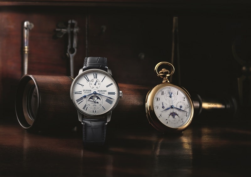 Всего выпущено семь новинок, причем две из них – с указателем фаз Луны. Часы с таким усложнением в арсенале Ulysse Nardin присутствуют с конца XIX века – ведь точное знание о положении спутника нашей планеты, влияющего на приливы и отливы, всегда имело огромное значение для мореплавателей. Часы Marine Torpilleur Moonphase, представленные в двух вариантах – с синим матовым и белым лакированным циферблатами, – не ставят перед собой задачу навигационного прибора, хотя пригодятся на палубе любого судна, пока вы с интересом вглядываетесь вдаль и, возможно, предскажут вам поведение океана. Каждый из вариантов лимитирован 300 экземплярами.