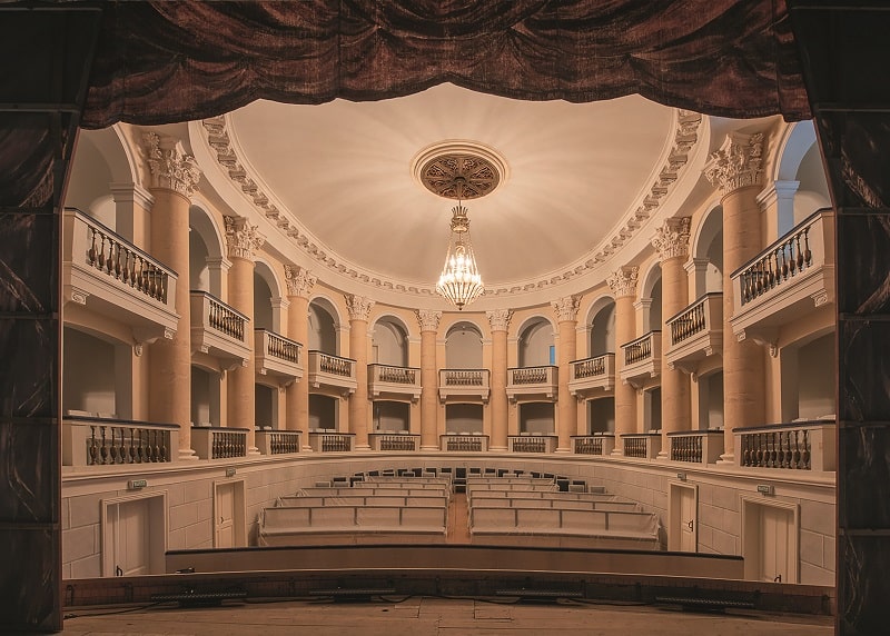 Это был год, когда праздновалось пятилетие победы над Наполеоном, и Юсупову, который лишь недавно купил эту усадьбу, хотелось поразить императора Александра и гостей чем-то невиданным. Поэтому он пригласил Пьетро Гонзага – известного театрального художника, который не просто помог возвести здание, но и с помощью сценической машинерии создал пространство для особенных представлений. Дело в том, что в тот период в Европе были модны «спектакли декораций», когда на сцене под музыку и звуковые эффекты менялись различные «картины». Актеры в таких постановках участия не принимали.