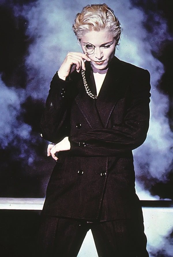 Джули Эндрюс, само воплощение женственности, носила элегантный смокинг с белоснежной сорочкой в фильме «Виктор/Виктория» (многие считают, что актрису вдохновлял образ Марлен Дитрих в «Марокко»). Грейс Джонс позировала для обложки альбома Nightclubbing (1981) в черном смокинге от Armani, а Энни Леннокс, лучшая половинка дуэта Eurythmics, подчеркивала свою андрогинность с помощью классической двойки. Чуть позже полюбила смокинги и Мадонна – она надевала их и на голое тело, с галстуком-бабочкой и цилиндром, и это выглядело более сексуально, чем когда она эпатировала публику кружевными лифчиками напоказ. Певица превзошла сама себя на церемонии вручения премии «Грэмми-2014», облачившись в необычный смокинг от Ральфа Лорена и дополнив его шляпой, тростью и бриллиантовой перчаткой а ля Майкл Джексон.