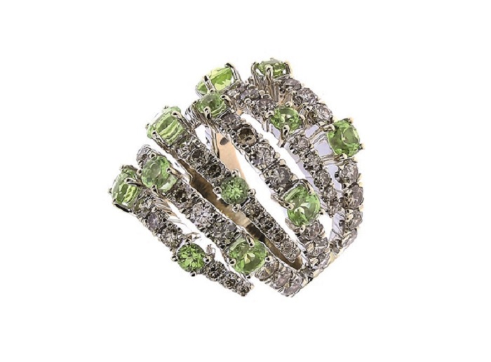 Эти украшения из белого золота с бриллиантами мгновенно стали хитом. Их оригинальность и изысканность оценили не только эксперты, но и такие мировые знаменитости, как Ева Лонгория, Шэрон Стоун и Гвинет Пэлтроу. И вот культовая коллекция пополнилась новыми украшениями. Два сета, включающие кольцо, браслет и серьги оригинального дизайна, выпущены в новых цветовых вариантах, подчеркивающих очарование летней ночи. Один из них – белого золота – представляет игру коричневых бриллиантов и зеленых перидотов. Другой – розового золота – восхищает переливами розовых сапфиров и аметистов.