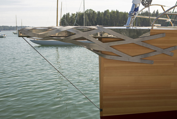 Великий Фрэнк Гери – достаточно вспомнить хотя бы построенные им музеи Гуггенхайма в Бильбао и Нью-Йорке, чтобы причислить его к величайшим архитекторам современности – на девятом десятке жизни занялся проектированием яхт. Работая в команде с девелопером Ричардом Коэном и морским архитектором Германом Фрерсом (гуру скоростного яхтинга), он создал еще один шедевр – парусник Foggy, который выглядит и ходит как полноценное гоночное судно, но сделан практически полностью из дерева. Построили необычное судно на верфи Brooklin Boat Yard в штате Мэн, США. Разумеется, такелаж и лебедки выполнены из стандартных материалов, но, к примеру, оба рулевых колеса – деревянные. Для корпуса использовалась оригинальная технология холодной формовки: разработчики придумали сэндвич-панели из древесины с внутренним слоем из углеволокна, причем этот новый материал оказался даже легче и прочнее современных синтетических композитов. А иллюминаторы в бортах и на палубе выполнены из 300 фрагментов стекла, вставленных в своеобразную дизайнерскую решетку.