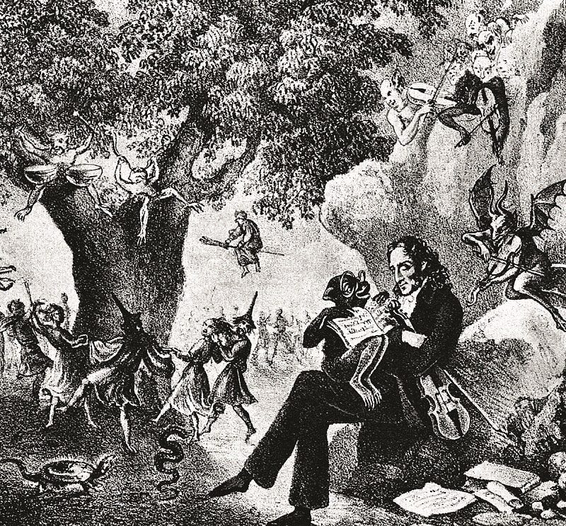 Подсознательно (а может, сознательно) Тартини и Паганини использовали для роста своей популярности легенды о «дьявольской природе» скрипки. Уже в XVI веке, практически одновременно с появлением инструмента в его классическом виде, возникает стихотворение про дьявола со скрипкой (приписывается Памфилусу Генгенбаху). В XVI–XVII веках создаются многочисленные гравюры и картины, на которых скрипку держит скелет (персонификация смерти, то есть воплощение дьявола). В эпоху романтизма этот образ становится расхожим: например, в философской поэме «Фауст», написанной Николаем Ленау (1836), на скрипке превосходно играет Мефистофель. В 1849 году на музыку Цезаря Пуни в Парижской опере был поставлен балет-пантомима «Un Violon du Diable» про скрипача, получившего волшебный инструмент от черта. Список произведений, использующих подобный сюжет, впечатляет.