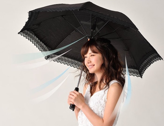 Оказывается, зонтик может быть не только защитой от дождя и от солнца, но и своеобразной альтернативой вееру – если, конечно, он снабжен изящными встроенными вентиляторами.