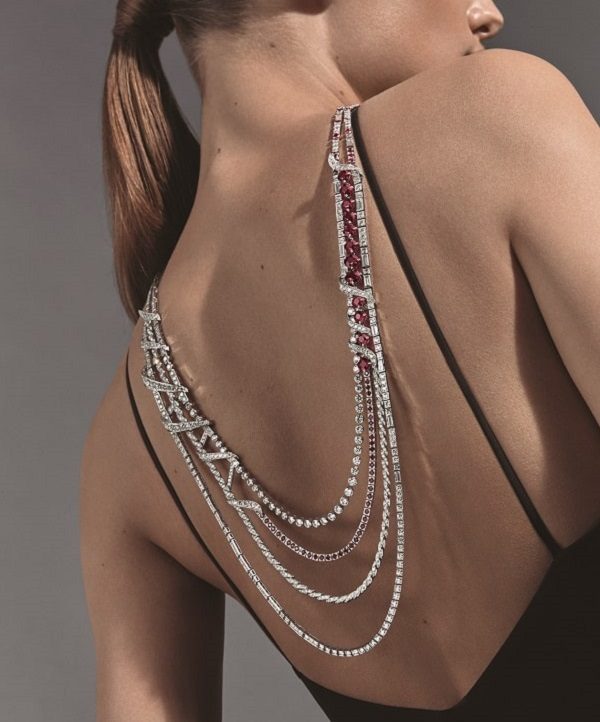 Этому знаковому месту посвящена Torsade de Chaumet – новая коллекция высокого ювелирного искусства, представляющая современное прочтение классических изгибов (torsade) – одного из символов дома. Виртуозные творения словно повторяют форму фриза Вандомской колонны или с легкостью и естественностью передают «застывшую» красоту мгновения: взмах крыльев птицы, покачивание колосьев пшеницы на ветру… Будь то бесцветные бриллианты или насыщенные красками сапфиры, рубины и изумруды – композиция украшений эффектно передает динамику изгибов. Расположение камней тщательно продумано, в сочетании оттенков и их насыщенности, совершенстве огранки и шлифовки рождается магнетизм.
