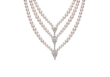 Имя этого бренда, известного своей строжайшей системой отбора жемчужин, стало синонимом безупречного качества и неустаревающего дизайна. Ассортимент украшений Mikimoto – от «элементарных» серег-пуссет и белоснежной нити жемчуга до сложнейших изделий, которые можно отнести к образцам высокого ювелирного искусства. Новое колье из коллекции Classic – три ряда тщательно подобранных по цвету и размеру культивированных жемчужин акойя, соединенных декоративными элементами из белого золота с инкрустацией бриллиантами круглой огранки.