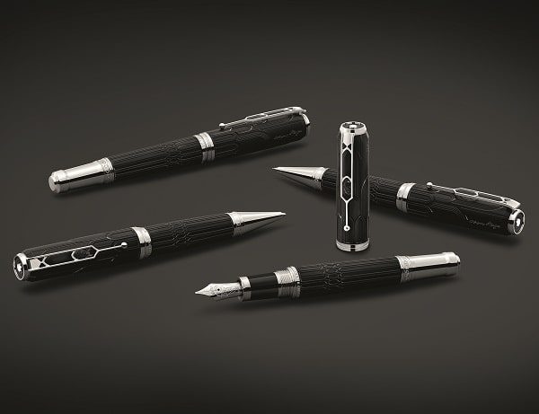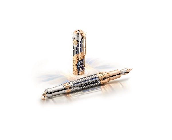 Перья из цельного золота 750-й пробы с родиевым покрытием украшены специальной гравировкой в виде горгульи. Впервые в коллекции Montblanc «Писатели» запускается серия из всего восьми инструментов. Одна из ее особенностей – применение техники эмалирования pliquea-jour в оформлении центрального декоративного элемента в виде розы собора с эмалью различных оттенков красного. Узоры на поверхности выглядят как миниатюрные витражи.