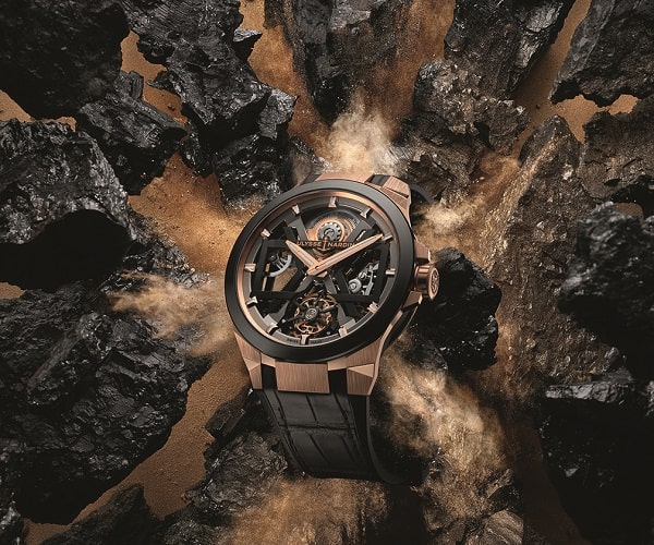 Циферблаты отмечены яркими красными вкраплениями: безель, детали, надписи, каретка турбийона и знаковый символ Х. Вся сила моделей заключена внутри нового калибра UN-172 с трехдневным запасом хода. За работой турбийона с автоподзаводом и мощным платиновым микроротором можно наблюдать с лицевой стороны часов.