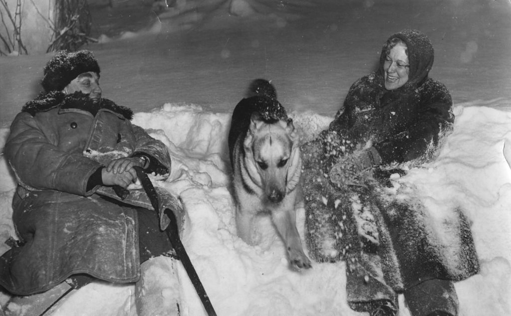 Любовь Орлова и Григорий Александров с овчаркой Кармен на даче во Внуково. 1968 г.