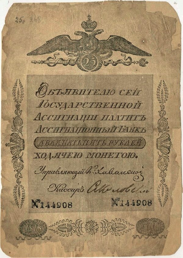 Государственная ассигнация 25 рублей 1818 г. ФОТО: ПРЕДОСТАВЛЕНО ИЛЬЕЙ ГОРЯНОВЫМ