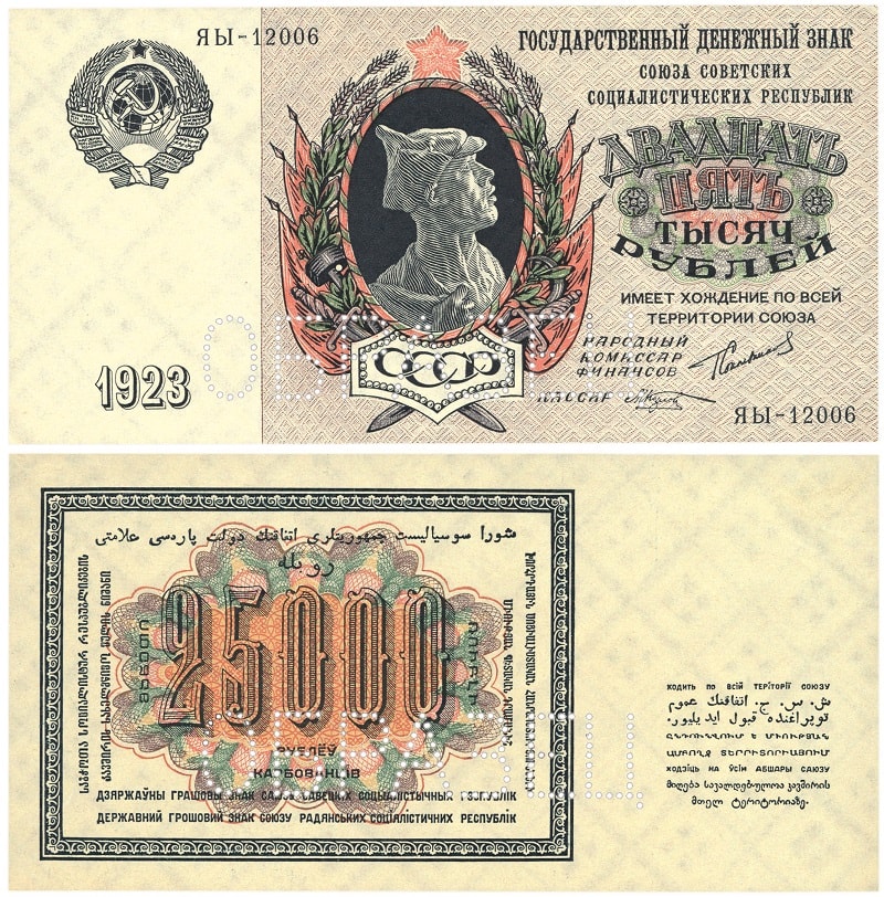 Государственный денежный знак СССР 25 000 рублей 1923 г. ФОТО: ПРЕДОСТАВЛЕНО ИЛЬЕЙ ГОРЯНОВЫМ