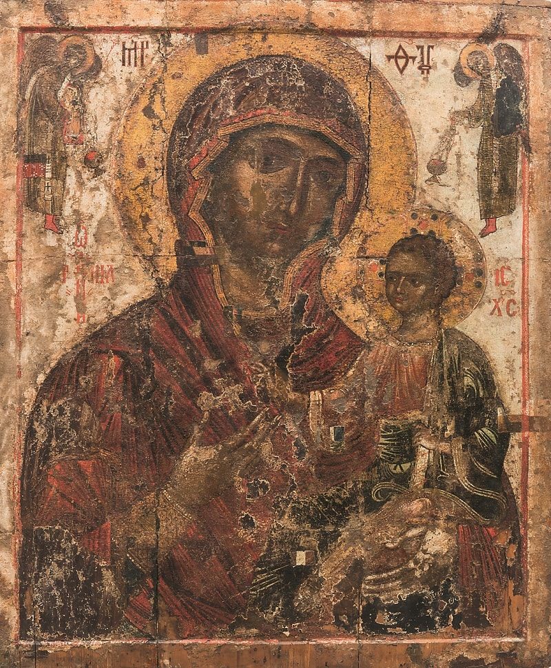 Богоматерь Одигитрия. XIII в. Дерево, левкас, темпера. Псковский государственный объединенный историко-архитектурный и художественный музей-заповедник