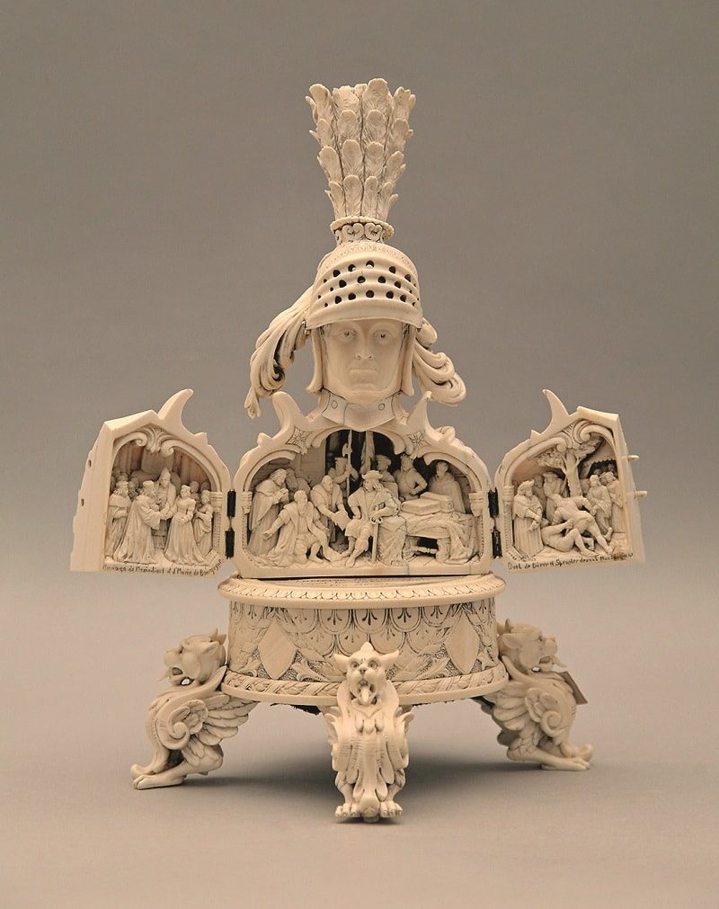 Резной бюст-складень императора Священной Римской империи Максимилиана I. Германия, XIX в. Слоновая кость; токарная резьба, гравировка. Ивановский областной художественный музей