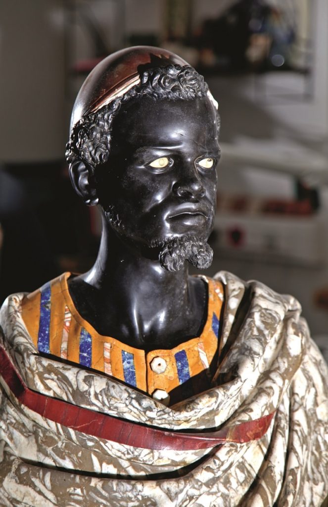 Скульптура «Негр в коричневой шапочке». 1870-е гг. Цветной камень, перламутр; обработка камня. Историко-архитектурный, художественный и археологический музей «Зарайский Кремль»