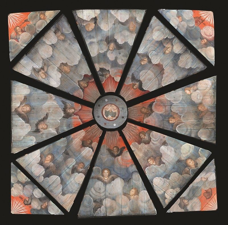 «Саваоф с херувимами и символами евангелистов». Восьмигранное расписное «небо» из часовни Тихвинской иконы Божией Матери деревни Хвалинская. 1790 г. Дерево, смешанная техника. Кенозерский национальный парк