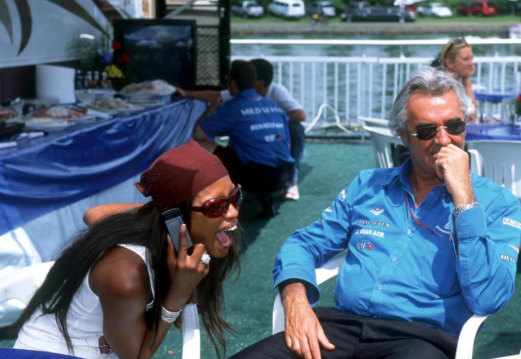 NAOMI CAMPBELL ON HER MOBILE PHONE WITH FLAVIO BRIATORE AT CANADIAN GRAND PRIX - 2001. Источник: CRISPIN THRUSTON/REX Shutterstock