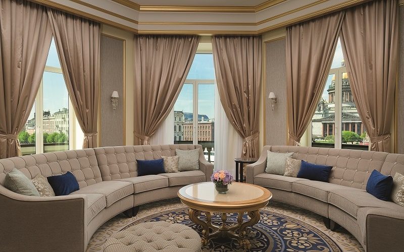 В разных странах есть небольшие расхождения по нормативам, но в целом расстояние между спинками кресел сидящих за столами гостей должно быть в диапазоне 1,5–3 м. Отели это соблюдают, везде есть ненавязчивая разметка. Чтобы обеспечить дистанцирование гостей и правильно расставить столы, убирают «все лишнее» – диваны, вазы, сервировочные столы и т. д.