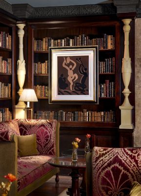 Коллекция отеля пополнилась такими значимыми работами Пикассо, как «Вакханалия с женщиной, сидящей с ребенком» и «Голова мужчины в полосатой майке». Первая представляет собой литографию 1959 года, подписанную карандашом самим мастером. Это редкий экземпляр – в мире известно всего несколько копий. Вторая – оригинальный офорт, выполненный в технике à la poupée цветами на тяжелой бумаге ручного производства Auvergne с водяным знаком Richard de Bas и подписью Пикассо.