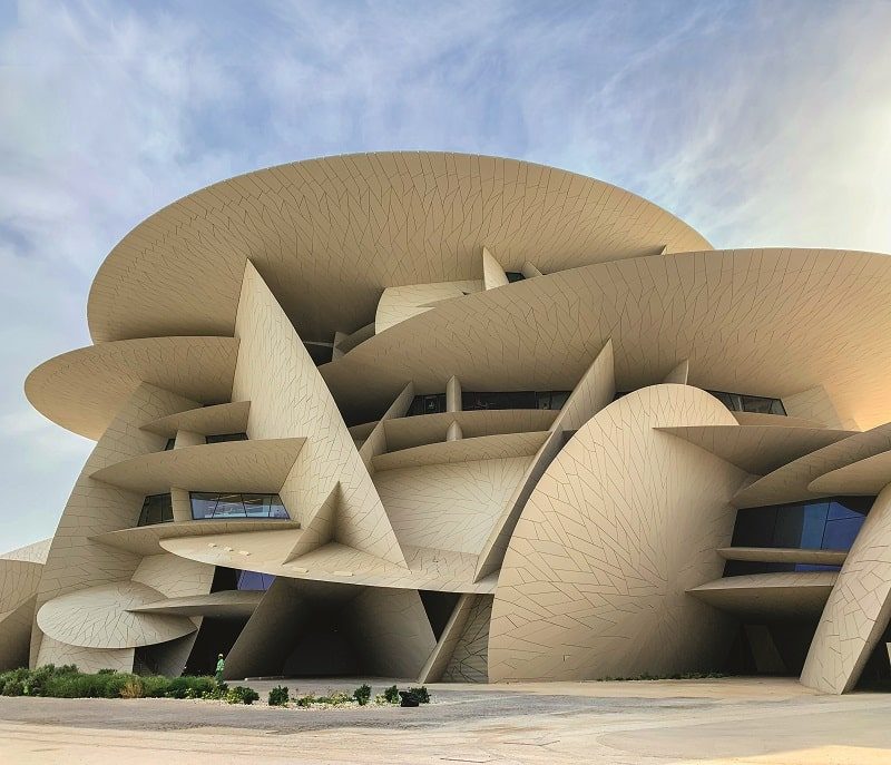 АРХИТЕКТУРА НАЦИОНАЛЬНОГО МУЗЕЯ КАТАРА ВЫЗЫВАЕТ АССОЦИАЦИИ С ВСТРЕЧАЮЩИМИСЯ НА ПОЛУОСТРОВЕ КРИСТАЛЛАМИ ПЕСЧАНОЙ «РОЗЫ ПУСТЫНИ»