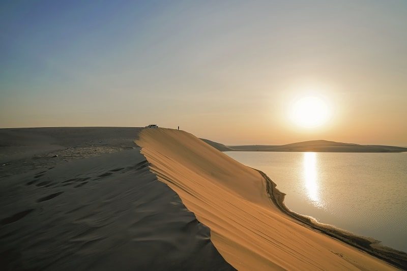 В 75 км к югу от Дохи начинается пустынная область Месайед. В этих краях находится самый необычный природный феномен Катара – Хор Эль-Удайд, или Внутреннее море. Так здесь называют длинный морской язык, окруженный со всех сторон серебристыми и золотистыми дюнами. Кажется, что шестидесятиметровые, увенчанные гребнями горы песка поднимаются прямо из воды. И лишь подъехав ближе, замечаешь, что это голубая лагуна, которая соединяется с Персидским заливом узкой протокой, над которой, словно в танце, кружатся песчинки.