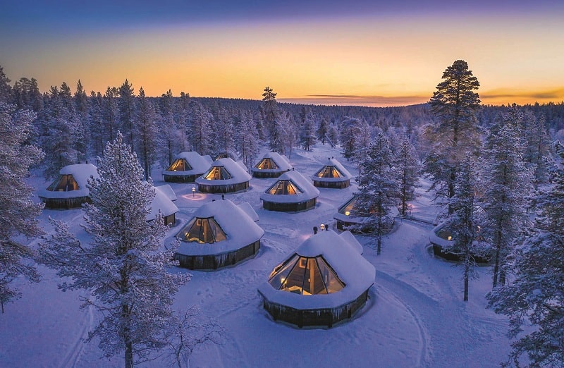 На курорте Какслауттанен охотники за северным сиянием ночуют в иглу с сентября и до конца апреля
